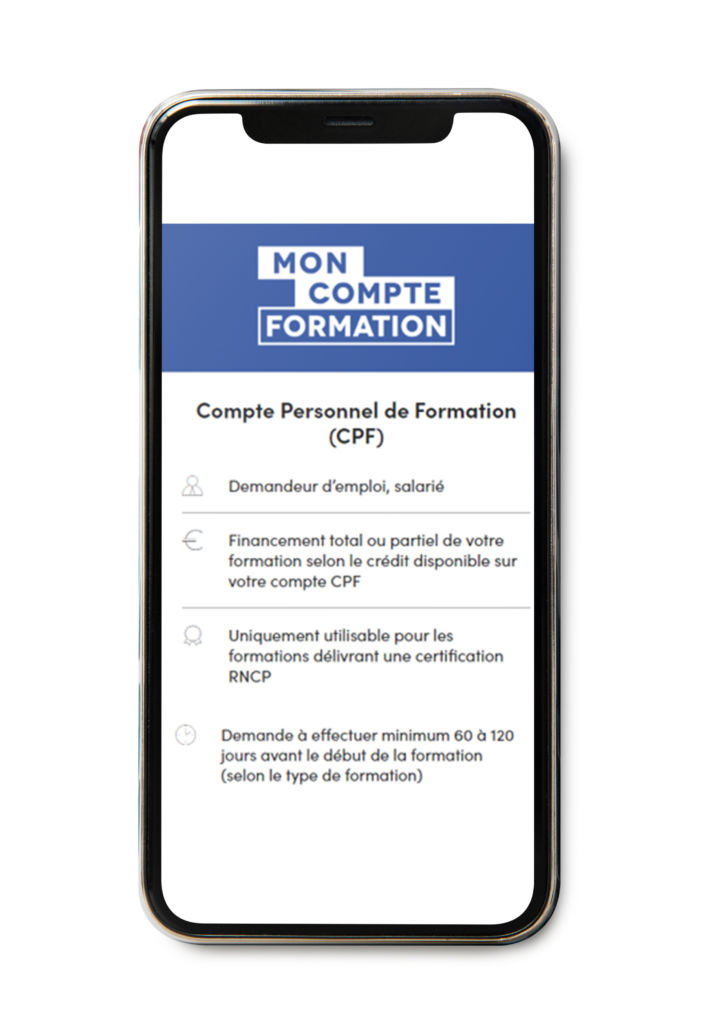 La formation peut être prise en charge en tout ou partie par le CPF, l’OPCO ou votre entreprise.
