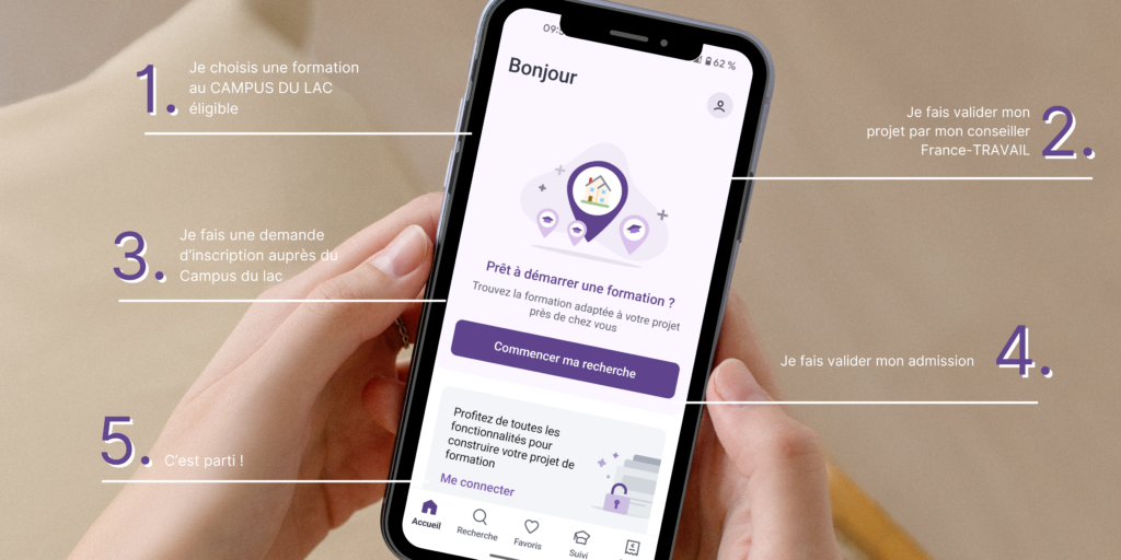 Vous pouvez vérifier si la formation de votre choix est éligible au CPF directement sur l’application MonCompteFormation. Par la suite, vous pourrez filtrer par organisme de formation. Au Campus du Lac, les formations certifiantes sont éligibles au CPF !