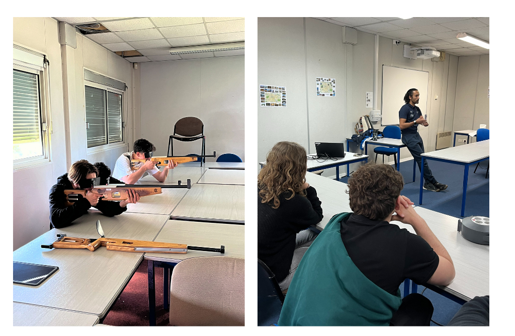 C’est sur ce principe, que le campus de Libourne, en partenariat avec le Club de Tir Sportif de Libourne, a mis en place la Journée du Tir. Une demi-journée permettant aux étudiants de recevoir la visite de 3 champions paralympiques locaux : Romain Ramalingom-Sellemoutou, Champion de France en para-tir et membre de l’équipe de France paralympique 2024, Luc Brochard, ancien international français, ou encore Gwenn Knoppers, jeune espoir du tir en formation au CREPS/DEJEPS de Bordeaux.